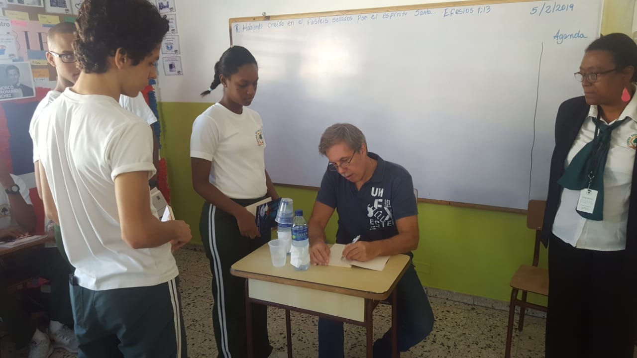 Aprovechando una semana de vacaciones viajé a mi querida República Dominicana para visitar colegios y charlar con jóvenes y niños sobre mi obra. Fue emocionante descubrir el interés de los jóvenes del colegio Emanuel por «La cueva del vidente» y «Ellos mueren en silencio». Para luego continuar con «El regreso de las carey» y «El viaje del Trapecista» en los demás centros. Gracias a todos por la excelente acogida y será hasta la próxima. Les dejo fotos de las visitas.